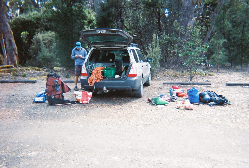 Classical Tasmanian approach – approx one day’s bushwalk each way.